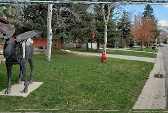 Depuis plus d'une douzaine d'années, une sculpture d’élan ou d’orignal, comme disent les québecois, fait d'alliage d'aluminium bon marché, monte la garde devant une maison en rondins de notre quartier, recevant plus de déjections d’oiseaux que d'admiration.