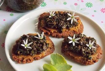 Aujourd'hui, je vous propose un Pesto iodé et des craquettes sans gluten (Vegan) :