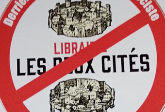 Il s’agit d’un remake, comme s’il y en avait tant besoin, de la soi disant » nouvelle librairie » d’extrême-droite de François Bousquet dans le quartier latin à Paris, nommée pudiquement ici « Librairie des deux cités », contre laquelle nous militons localement, comme le sticker ci-dessus l’illustre opportunément . Et pour joindre l’utile à l’agréable… 😊⬇️