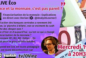 La monnaie aujourd'hui n'est plus la monnaie d'hier avec la financiarisation de l'économie. On est de retour sur twitch.tv/0vinz ce mercredi 19 mai à 20h30 pour vous expliquer tout ça et remettre les points sur les i avec Dorian (@AnalystLearner), en toute pédagogie, en toute décontraction.