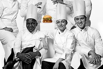 Ils se sont amusés à adapter les réflexes de belle cuisine à la street food en imaginant deux burgers gourmands, simples et bien faits. Il propose une interprétation très "parisienne" de ce sandwich iconique en appliquant les spécialités de la capitale ; une viande maturée à point, assaisonnée et cuisinée comme un steak au poivre ou façon " Maître d'hôtel " dans un pain atypique créé pour l'occasion. Ils ont aussi pensé aux végétariens en remplaçant la viande par une préparation appelée " boudin noir végétal ", composé de riz noir, betteraves et semoule et évidement servit avec un condiment de pommes.