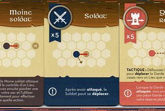 Pour le placement, rien de compliqué. On place la pièce piochée sur un lieu vide que vous contrôlez, ou sur une autre unité de même type pour la renforcer. Plus il y a de jetons sur une même unité, plus elle est forte. Il n’y a aucune limite de taille. Attention, on ne peut avoir qu’une seule unité de chaque type présente sur le plateau en même temps !