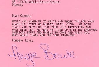 En été, alors que nous étions en vacances en Corse mon père a reçu une lettre d’Angie Bowie, la femme de David (dont certains pensent qu’elle a pu inspirer la chanson Angie des Rolling Stones.)