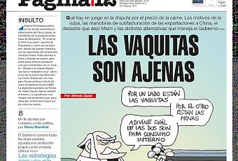 En ce dimanche matin, prélude à un long week-end de fête nationale, Página/12 consacre sa une au scandale du prix exorbitant de la viande et au boycott qu’ont entamé les producteurs pour ne plus livrer leur produit au marché intérieur jusqu’à ce que le gouvernement fasse marche arrière et leur rouvre le droit d’exporter et de récolter beaucoup de devises (voir mon article du 19 mai 2021 à ce suet).