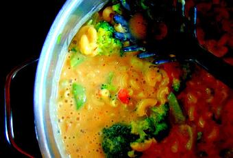 Pendant que les champs brûlent pâtes cuisent (450g), pâtes auxquelles j'ajoute du brocoli 2 minutes avant la fin de leur cuisson ....