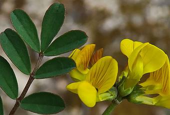 Hippocrepis comosa (Hippocrépide en ombelle) : herbacée ligneuse à la base ; tige étalée-dressée ; feuilles pétiolées à 5-15 folioles ovales lancéolées ; inflorescence en ombelle à 4-10 fleurs papilionacées jaunes ; gousses flexueuses à articles en fer à cheval.