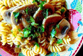 Pendant que les pâtes cuisent (pâtes dont on conservera environ une tasse de l'eau de cuisson).......