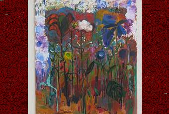 Chaque tableau est suffisamment construit pour que nous pénétrions aisément dans le cadre qui nous est offert. Et nous voilà précipités dans un univers de contes de fées ou de dessins animés. Mais sans personnages. Des décors de rivières, de rochers, de végétation luxuriante… C’est faussement réaliste! Pour notre plus grand plaisir! L’eau peut être rouge, les arbres bleus, les falaises mauves et les fleurs géantes. L’artiste joue avec les camaïeux, s’amuse de mariages de teintes inattendus, varie l’utilisation des outils picturaux (pointillés, traits, aplats, fondus…), en exploite plusieurs (pinceau, pastel, aérosol…) et multiplie ainsi les effets de matière.