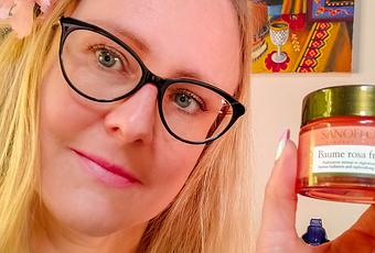 J'ai testé le baume rosa fresca , baume de nuit, il a une texture gel fraîche et douce qui laisse la peau vraiment hydratée et pour longtemps. J'aime particulièrement cette texture parfaite pour accompagner les nuits d'été. Et cette odeur de jolie rose....