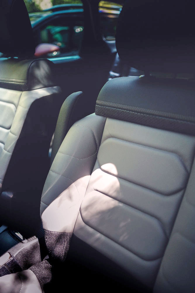 L’arrière du dessin originel, beaucoup plus juste, n’évolue pas. À l’intérieur, l’ergonomie est peaufinée avec une console centrale entièrement revue, qui voit l’apparition d’un chargeur à induction ainsi qu’à de nouveaux rangements/porte-gobelets. Petite mise à jour des plus agréables, l’écran de 7 pouces s’offre plus de 5 centimètres supplémentaires en diagonale, portant sa taille à 9 pouces. Notre nouvelle génération de C3 Aircross bénéficie des sièges issus du programme Citroën Advanced Confort, destiné à promouvoir l’un des piliers de l’ADN de la marque : le confort. Pour ce faire, l’équipe a développé une structure en mousse dite « d’accueil », d’une épaisseur de 15mm, située juste sous la sellerie de l’assise. On regretterait presque, à ce titre, l’absence catégorique d’amortisseurs à butté hydraulique. Le confort, c’est aussi la lumière ; en ce sens, s’ajoutent aux persiennes, un toit panoramique ouvrant, et des pare-soleils pour les passagers arrières. Pour rappel, le fait que les sièges passagers soient entièrement rabattables permet de laisser la place à des objets jusqu’à 2 mètres 40. À vos déménagements !