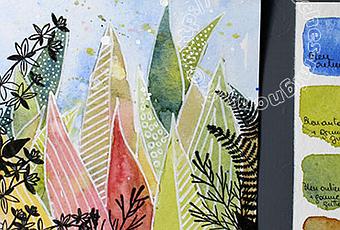 Hello, hello ! Une nouvelle réa pour les challenges de Manuela. Le numéro 13 – Technique : Dégradé, couleurs : Nuances de verts