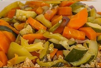 - En mode dorer, faire revenir les carottes et les courgettes dans un peu d’huile d’olive.