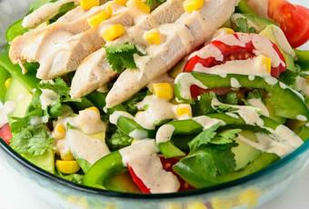 Salade de poulet tomate et poivron , facile et rapide à faire pour un plat de dîner léger et complet , voila la recette facile à la maison.