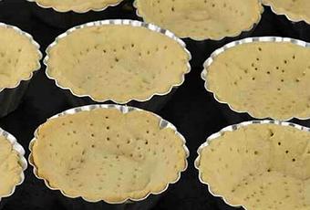 Etalez votre pâte dans les moules à mini tarte, découpez le surplus de pâte avec un petit couteau puis piquez le fond avec une fourchette