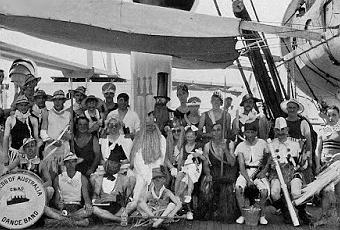 Les cérémonies de traversée de l'équateur, comme celle à laquelle JP et moi avions assisté très brièvement étaient très « kitsch », rappelant un peu les spectacle du style Club Med, mettant en vedette des personnages déguisés, censés représenter que la hiérarchie à bord était momentanément renversée, avec le capitaine perdant son autorité, au profit d'un individu déguisé de façon grotesque et incarnant Neptune, le tout, somme toute, assez puéril ...