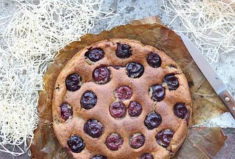 Autant je ne suis pas vraiment une acheteuse impulsive pour ce qui est des achats non alimentaires (on parle de la fille qui se tâte pendant six mois avant de s'acheter une nouvelle robe), autant je me laisse (souvent) emporter au rayon fruits et légumes. Si les grands magasins me laissent de marbre, je résiste difficilement à l'étal du primeur, et je craque régulièrement pour des choses qui me font envie sur le moment, mais dont finalement, je ne sais pas trop quoi faire. Cela m'arrive particulièrement souvent avec les fruits, et plus encore les fruits d'été. Fut un temps où je finissais tous mes repas par des fruits, et j'en consommais donc pas mal. Et puis, peu à peu, j'ai réduit ma consommation, et elle n'est aujourd'hui plus si importante car au final, à la fin des repas, je n'ai plus envie de fruits... oui mais voilà, c'est un peu comme si mon cerveau n'avait pas encore intégrer complètement ça et au moment de faire les courses, je ne résiste pas à l'appel des fruits. C'est exactement ce qui s'est passé avec ces cerises... j'en ai eu envie sur le coup, envie passée une fois rentrée à la maison. Parce que je n'allais pas les laisser perdre tout de même, j'ai eu l'idée de les glisser dans un gâteau. Un gâteau tout simple, sur la base du gâteau au yaourt bien connu, avec tout de même un petit twist : l'ajout de poudre d'amande dans la pâte, dont la saveur se marie si bien avec les cerises. Et comme une fois n'est pas coutume, j'avais des yaourts aromatisés à la vanille, c'est de ceux-ci dont je me suis servie. Mais vous pouvez très bien les remplacer par du yaourt nature additionné d'un peu d'arôme naturel de vanille et de sucre.