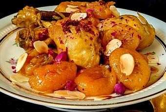 Mettez le tajine de poulet au safran, abricots et barberries dans un plat de service.