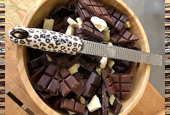 L'emploi d'un acier inoxydable chirurgical permet un résultat est léger, floconneux et sans effiloches que cet objet est devenu culte dans toutes les cuisines de chef. Me croirez-vous si je vous dis que je la glisse dans ma valise avant de partir en vacances ? J'ai choisi le modèle "léopard" (édition limitée) pour illustrer ce billet. Il est vendu avec son étui de protection qui permet de le ranger en toute sécurité.Cette année la râpe gros-grains a été redessinée pour s'adapter sur un bol et râper plus efficacement et plus proprement légumes, fruits, fromages sans effort directement dans un récipient. J'ai remarqué les deux poignées arrondies et antidérapantes.