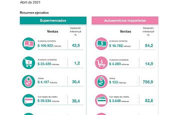 Côté consommation, l’INDEC note une augmentation interannuelle de 42,5 % des ventes à prix courants (sans correction liée à l’inflation) dans les supermarchés de proximité. En prix constants (en tenant compte de l’inflation, soit 48,8 % en valeur interannuelle), on observe également une hausse de 1,2 %, ce qui n’est pas si mal eu égard aux variations du chômage et aux confinements ou semi-confinements successifs.
