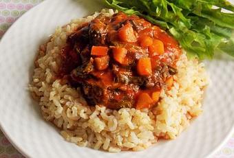 Aujourd'hui, je vous propose du Riz à la sauce tomate à la rhubarbe (Vegan) :