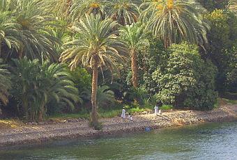 Derrière les rives verdoyantes on distingue partout le désert. La crue du Nil, qui avait lieu chaque été et qui apportait le limon permettant la culture de ses rives. Depuis la création des barrages les eaux limoneuses du Nil sont captées et redistribuées sur les terres agricoles.
