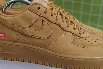 Après les versions Black et White, la Supreme x Nike Air Force 1 revêt le mythique coloris Flax de la silhouette.
