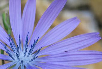 Lactuca perennis (Laitue vivace) : herbacée vivace ; tige dressée ramifiée à latex blanc ; feuilles profondément pennatiséquées, les inférieures pétiolées, les caulinaires embrassantes ; inflorescence en capitules groupés en panicule ; fleurs toutes ligulées bleu-violacé ; akènes noirs à aigrette blanchâtre.