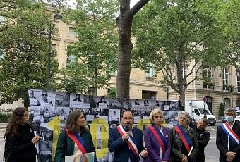 Rassemblement à proximité de l’ambassade d’Egypte avec Amnesty France et Céline Shaath, dont l’époux, Ramy Shaath, est détenu arbitrairement depuis bientôt 2 ans en Égypte.
