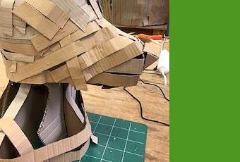 J’espérais, grâce au stage de sculpture en carton que je viens de terminer, pouvoir vous présenter un magnifique buste de Memphis en 3D. C’était compter sans ma lenteur et ma “malhabileté”. Le stage est terminé et Memphis ressemble à une ébauche de momie, sans yeux, sans oreilles et sans pelage… Pas faute d’implication pourtant. “J’voudrais ben, mais j’peux point”. J’enrage mais on ne se refait pas et on ne peut pas remonter le temps. Encore une illusion qui s’envole !