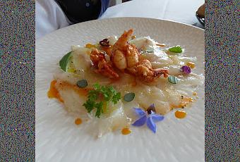 Carpaccio de Bar de Ligne, Huile vierge et Homard étuvé