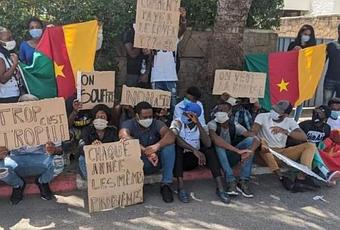 Sur les photographies qui circulent sur les réseaux sociaux, quelques quatre étudiants couchés à même le sol devant le portail de l'ambassade du Cameroun au Maroc. Une affiche apposée sur des fleurs, informe : "Les étudiants boursiers camerounais au Maroc abandonnés par leur gouvernement". D'autres messages inscrits sur des pancartes et autres supports posés au sol renseignent davantage sur la situation de ces jeunes Camerounais qui campent ainsi depuis les premières heures de ce 12 juillet 2021 : "nous sommes à la rue depuis des jours", " nous réclamons 18 mois de bourses", " le gouvernement camerounais nous abandonne",...
