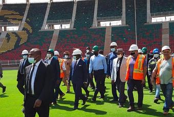 Le chantier de construction du stade d'Olembe connaît à ce jour des travaux de finition, pour ce qui concerne les infrastructures en rapport avec le cahier de charges de la Caf, en vue de l'organisation de la Can Total Energies 2021, qui aura lieu du 9 janvier au 6 février 2022 au Cameroun. Des finitions de travaux qui, en trois semaines par rapport à la dernière visite, donnent déjà à ce stade une allure des grandes arènes de football visible de par le monde. Les visites de chantier du Pr Narcisse Mouelle Kombi, le ministre des Sports, maître d'ouvrage et président du Cocan, ressemblent désormais au dernier coup de hache qui fait tomber l'arbre. Progressivement, ce Complexe sportif d'Olembe, dans sa première phase, offre de plus en plus un visage de fin de chantier, quand bien même il y a encore quelques ajustements à faire. Pour cela, le Pr narcisse Mouelle Kombi entend multiplier la fréquence de ses visites. " Nous maintiendrons le rythme de descentes. Peut-être, nous accélérons le rythme de nos descentes sur cette infrastructure qui, comme vous le savez, est appelée à recevoir dans quelques mois, son premier match test. Ce match servira bien sûr de test de fonctionnalité, pour l'ensemble des équipements déployés, avec une perspective de forte sollicitation et de fonctionnalité intégrale pour le mois de janvier, dans le cadre de la Can ", a déclaré le ministre des Sports.