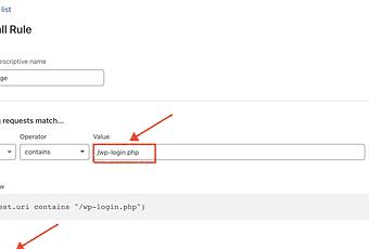 - Page de connexion WordPress sécurisée : Accédez à votre page de règles de pare-feu – créez le champ “URI”, la valeur “/wp-login.php” et l’action “JS Challenge”. Vous disposez maintenant d’une page de protection JS qui peut aider à réduire les attaques de bots sur votre page de connexion.