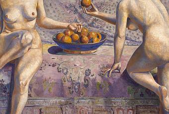 C’est à partir de 1910 que Georgette va passer à la vitesse supérieure et commencer à s’exprimer dans un style bien plus personnel et novateur. Inspiré par les avant-gardes qu’elle soutient et qu’elle fréquente, l’artiste s’inspire de plus en plus du style du fauvisme, basculant son utilisation de la couleur vers un résultat plus franc et plus vif. Elle s’attache à travailler la résonance des couleurs entre elles, notamment les couleurs complémentaires telles que le bleu et l’orange comme on peut l’observer dans le magnifique Femmes à la coupe d’oranges :