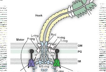Le côté gauche corresponde au moteur avec l'unité statorique dépendante de H+ (MotA/MotB) et le côté droit montre le moteur avec l'unité statorique dépendante de Na+ (PomA/PomB). Le moteur flagellaire de Vibrio spp marine contient deux structures annulaires supplémentaires: l'anneau en Y et l'anneau en H. Abréviations: C-ring, anneau cytoplasmique; IM, membrane interne; L-ring, anneau lipopolysaccharidique; MS-ring, anneau intermembranaire / anneau supramembranaire; OM, membrane externe; P-ring, anneau peptidoglycan; PG, peptidoglycan