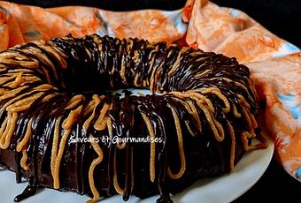 Ce gâteau est humide, très moelleux, très bon mais fragile au démoulage. Aussi, j'ai rajouté une couche de ganache au gâteau qui n'existe pas dans la recette initiale.