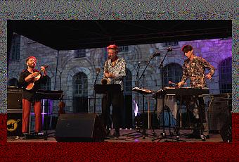 Velvet Revolution porte bien son nom. Révolution de velours (allusion à celle de Vaclav Havel en Tchécoslovaquie). Le velouté de la sonorité de Daniel Erdmann, les fulgurances et parfois l’âpreté de Théo Ceccaldi, la densité des harmonies de Jim Hart. La musique produite est originale et prenante. Les 2 cd déjà sortis ont été couverts de récompenses, les 3 musiciens couverts d'éloges. Ce soir sur la place Pierre Betz ils ont visiblement donné leur meilleur. Le répertoire est constitué de pièces propres au groupe, principalement des compositions de Daniel Erdmann. Des mélodies prenantes parfois bouleversantes de simplicité apparentes. Typiquement un morceau se déroule de la manière suivante : énoncé en valeur longue et sobre de la mélodie au saxophone par Daniel Erdmann, en parallèle des développements fulgurants et stratosphériques de Theo Ceccaldi, entre ces deux voix extrêmes Jim Hart comble le vide créé par des harmonies très riches et d'autres mélodies alternatives. Velvet Revolution est polyphonique. Malgré tout et de manière totalement intégré au projet chacun a eu une partie solo. On gardera en mémoire celle de Theo Ceccaldi qui nous a laissé pantois. Malgré une formule à priori difficile le public fut touché par la prégnance des mélodies de Daniel Erdmann et la force de conviction des 3 musiciens. Concert magistral, conclu en rappel par un standard inattendu: "Over The Rainbow" très sobre. Ce fut tout à l'honneur du festival de Souillac de les avoir programmé.