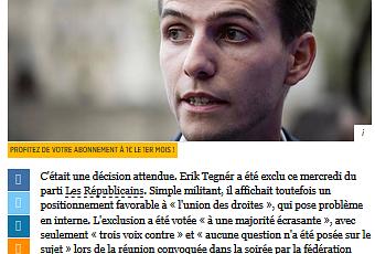 Erik Tegnér n’est pas ici un inconnu. Malgré cette mémoire que je sais si faillible, ce que je compense en partie par les traces laissées sur ce blog, je me souvenais très bien l’avoir épinglé naguère pour ce genre de dégueulasseries racistes dans la droite sarkozyste fut si friande… Ce qui n’a cependant pas empêché l’impétrant arrogant arriviste dont je veux évoquer aujourd’hui l’œuvre au noir de se faire excommunier par ses « propres » petits camarades d’alors :