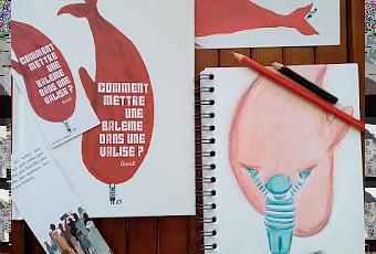 Un album très fort traité de façon poétique et tendre. Malgré un sujet terrible : celui de l'exil, de la migration du personnage vers une destination inconnue parmi d'autres personnes elles-mêmes avec des valises, Guridi suggère, esquisse, apporte de la douceur. Le vide, l'espace inoccupé des feuilles prend une symbolique poignante. Le contraste entre la grandeur et la petitesse du personnage qui se révèle très fort pour parvenir à ses fins envoie un message positif. Tout se joue sur le fil, le personnage de veut rassurant et solide. La baleine se plie à la volonté du personnage dans tous les sens du terme. Guridi a travaillé à l'aquarelle et joue avec le minimum. Un rouge profond de la baleine contraste avec le bleu du personnage. Le lecteur est laissé libre d'interpréter la symbolique de la baleine: est-ce que cela représente une question? L'angoisse? La peur? Quelque chose qui nous dépasse mais dont nous ne pouvons, malgré tout, nous défaire?Un album magnifique à découvrir absolument ! Gros coup de ❤️ Quelques pages pour rêver: