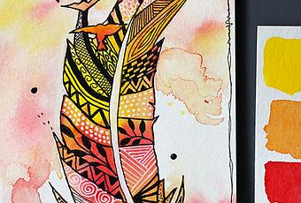 Hello, hello ! Je continue dans les challenges aquarelles… Voici le numéro 18 – Motifs : Plume – Couleurs : Orange