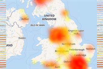 Détecteur de panne – un service populaire qui donne des informations sur les pannes en direct – également reflète que 3 (trois) Royaume-Uni traverse en effet un problème dans de nombreuses régions (comme Manchester, Londres, Glasgow, Birmingham, Leeds, Liverpool, Bradford, Nottingham, Édimbourg et Sheffield), comme le montre l’image ci-dessous :