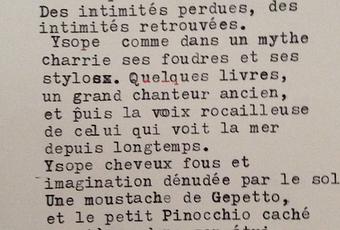 Et voici mon Portrait poétique écrit par Alice à Sète (toujours au festival Voix Vives ce 1er août), pendant que dans le même temps je la dessinais penchée sur sa vieille machine à écrire, posée sur une table basse en bois, un bruit de tip' Tip, tip' tip, tip... bien plus assourdissant que ce que mon souvenir de ces machines d'antan, ne me l'aurait laissé croire...
