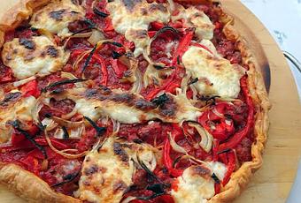 Au mois de juillet je n'ai pas arrêté de faire des tartes salées avec comme base de la pâte feuilletée. J'aime beaucoup les tartes salées et dans un moment de faiblesse j'avais profité d'une promo 3 pour le prix de 2. Vous connaissez ça certainement. On se dit qu'on a le temps de les utiliser et on les range dans le frigo et on les oublie... Au bout de quelque temps on les retrouve et on vérifie la date limite de consommation et même si je ne la respecte pas scrupuleusement, le temps commence à presser et comme je ne veux rien gaspiller, j'ai pioché dans ma to do list et voilà la raison pourquoi plusieurs recettes de tartes salées se suivent.