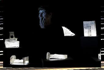 Camille Carraz raconte, avec des mots et avec des gestes de main très précis, sorte de langue des signes des émotions qui suivent une chorégraphie captivante. Sa voix est posée, encourageante, sans l’ombre d’une angoisse. Sa prononciation est parfaite et elle dit les didascalies, au rythme des mouvements de ses mains. Le texte se répète par bribes, comme dans un conte de randonnée typique de la littérature jeunesse où le récit avance à la manière d’un crabe, en reculant avant de progresser.Derrière elle, le décor est un tableau noir et blanc, aux allures de vitrail, qui évolue à l’instar des images de ces albums où l’on perçoit des formes en 3D grâce aux autostéréogrammes qu’on appelle aussi des anaglyphes. Chaque page présente deux images en 2D d'un même objet prises sous un angle légèrement différent, afin que le cerveau puisse reconstituer une vue 3D de cet objet. Il suffit pour cela que le cerveau fasse un effort oculaire de convergence et de mise au point dissociée de l'accommodation. Le cerveau analyse les deux images pour n’en faire qu’une. On appelle ça la vision stéréoscopique.A ceci près qu’ici c’est la vidéaste-plasticienne, Pauline Léonet, dont la régie est à vue, à jardin, qui opère et qui fait apparaître les objets cités. Le spectateur est ainsi dans un espace qui tient du studio de création et dont il s’évaderait sans y prendre garde, comme pris par la main et conduit par la conteuse dans la maison de la petite fille.On suit Lene, une petite fille qui profite de l'absence de sa mère pour faire ce qui lui est interdit : descendre à la cave, là où il fait noir et humide et où il y a des choses noires et humides qu'elle ne connait pas. Elle devra surmonter sa peur, dérober la lampe torche de son frère Asle et surtout trouver la force de désobéir ...Tout est si juste que la mise en scène pourtant très précise de Frédéric Garbe se fait oublier. On est embarqué, par la voix, les gestes, la musique et les images qui, ensemble, exerce un attrait hypnotique qui nous autorise à entrer dans la tête de l’enfant.Des pauses offrent des moments de respiration pour la comédienne. C’est l’occasion de plonger le regard dans ce que j’ai pris pour des sculptures dans des blocs de glace mais qui sont de superbes œuvres de papier réalisées par la plasticienne. Leur mise en lumière est une ponctuation qui recentre le récit.Aïe aïe aïe dit Lene a chacune des péripéties retardant sa progression. On la suit pas à pas, tantôt Alice, tantôt Petit Chaperon que la mère n’a pas mise en garde d’un danger qui ne vient peut-être pas de cette cave où tout est noir et humide.Si ce conte n’est pas mis en scène pour un public d’enfants (tout en leur étant bien entendu accessible) il n’empêche que Jon Fosse l’a écrit en tant que tel en 1994. Il a publié aussi de la poésie, des romans et des pièces de théâtre qui ont été montées entre autres par Claude Rémy, Patrice Chéreau, ou Jacques Lassalle.