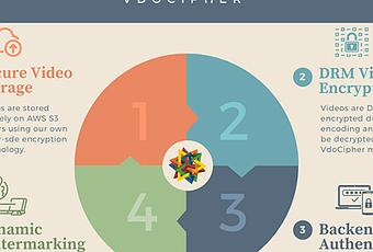 VdoCipher garantit que les vidéos premium ne sont pas téléchargeables à l’aide de plugins, d’outils, de hacks, etc. Ceci est mis en œuvre via un cryptage vidéo basé sur DRM, car vidéo DRM offre une haute sécurité contre le piratage vidéo. VdoCipher est un partenaire de licence direct pour Google Widevine DRM et fournit également une intégration pour Apple Fairplay DRM.
