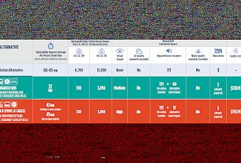 Bien qu'elle ait un impact visuel plus important sur les montagnes, la télécabine aurait un moindre impact sur les réserves d’eau potable, la faune et la pratique de l'escalade dans le canyon. Sur 30 ans, les deux options coûteraient à peu près autant, soit un demi milliard de dollars.