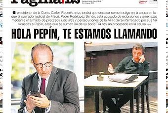 A cette situation déjà scabreuse, s’ajoutent les enquêtes que Página/12 poursuit et que la rédaction feuilletonne à la une sans qu’elles trouvent ni écho ni contre-argumentation dans les quotidiens de droite. Ce qui n’était pas le cas dans le sens inverse : lorsque Cristina ou les kirchneristes entraient dans le collimateur de la justice, Página/12 ne manquait jamais de l’annoncer le jour même avant de contre-argumenter le lendemain et les jours suivants.