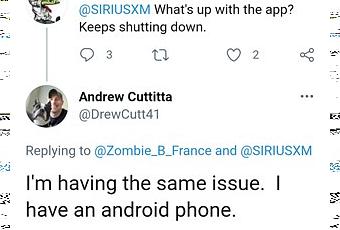 Heureusement, les camions de plaintes ne sont pas passés inaperçus par l’équipe SiriusXM puisqu’ils ont répondu à plusieurs plaintes d’utilisateurs indiquant qu’ils étaient au courant du problème et travaillaient sur un correctif.