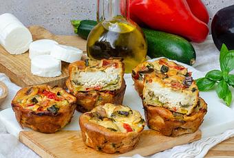 Ici j'ai préparé des petits clafoutis individuels aux légumes grillés et au basilic avec un coeur de fromage de chèvre. C'est très très très bon !