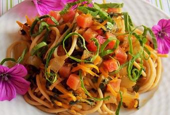 Aujourd'hui, je vous propose une Sauce betteraves-carottes-wasabi pour spaghettis (Vegan) :
